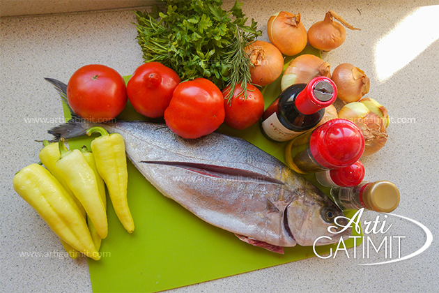 - Pastrojmë dhe lajmë peshkun. E marinojmë me erëza për gati 1 orë dhe e vendosim në një tavë të lyer me vaj ulliri.