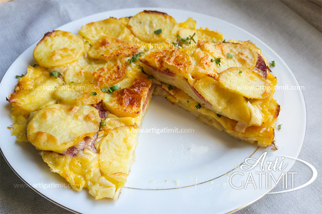 - Tortë patate në furre është gati. E lëmë të ftohet dhe e shërbejmë si pjatë unike me pak majdanoz të grirë sipër.