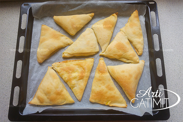 Edhe pse për sot zgjodhëm byrek me gjize, këta byrek trekëndësh mund të mbushen edhe me spinaq. Janë shumë praktik për tu marr me vete në punë ose në piknik.